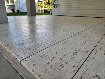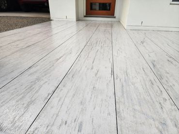 Looking for something a little different to jazz up your tired boring concrete areas? Our concrete timber look overlay might be the answer you were looking for. Being hand crafted we can work with you to customise the length and width of the planks, as well as finer detailing including nail holes and borders. Concrete timber look concrete is the ideal way to transform your garages, patios, pathways, indoor rooms and more without the maintenance involved that timber requires.